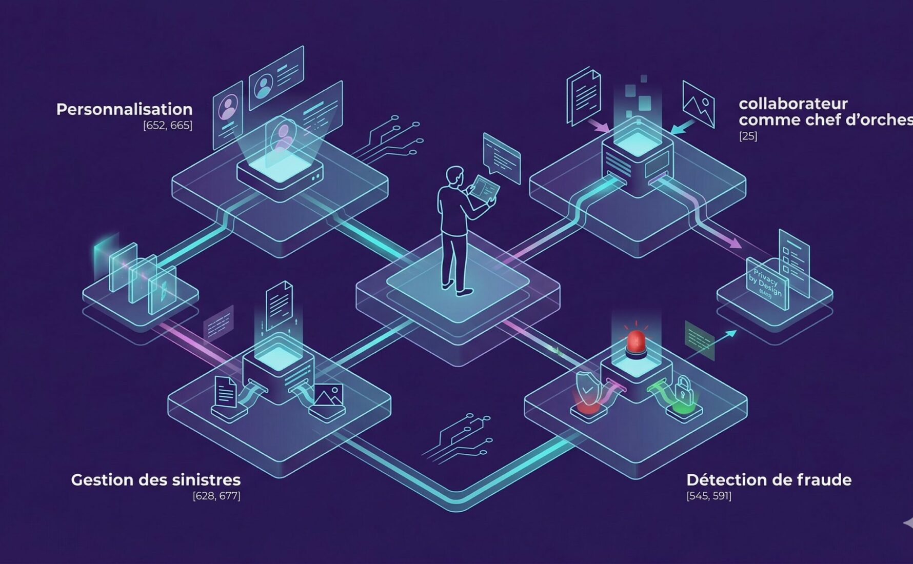 Le déploiement de ces technologies repose sur une infrastructure de données robuste et une orchestration précise des flux. Les agents n’agissent pas en isolation mais font partie d’un écosystème où chaque entité possède une spécialisation, comme la détection de fraude ou l’analyse de risques climatiques. Cette spécialisation permet une scalabilité horizontale du système : plus on ajoute d’agents experts, plus l’intelligence globale du système augmente. Les gains d’efficacité opérationnelle ne se limitent pas à la vitesse de traitement, ils touchent également la qualité des décisions, car l’IA agentique peut analyser des volumes de données hétérogènes bien plus vastes qu’un opérateur humain, garantissant ainsi une tarification plus juste et une meilleure maîtrise de la sinistralité.