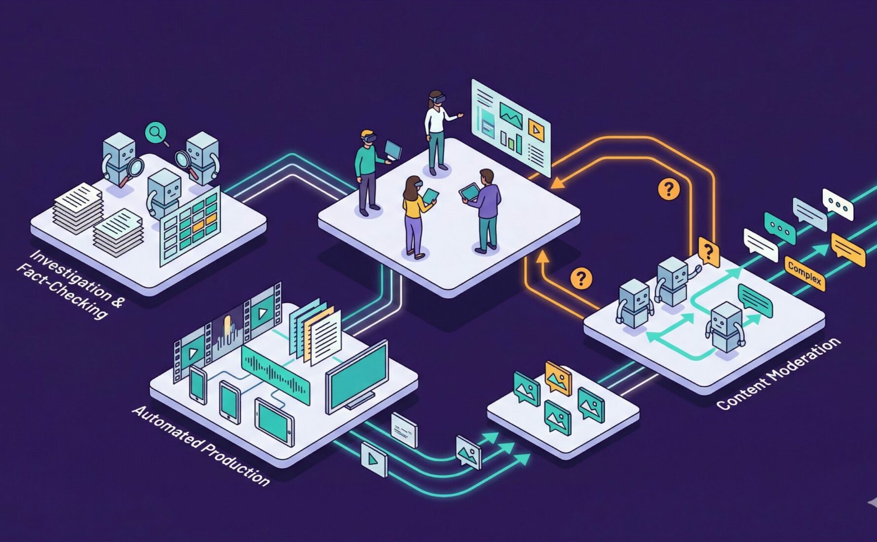 Pour répondre à cette crise de l’échelle, l’intelligence artificielle agentique émerge comme la solution technologique de pointe, à condition expresse d’y associer la finesse de l’analyse humaine. Contrairement aux algorithmes classiques et passifs, les agents autonomes sont dotés d’une capacité de raisonnement séquentiel leur permettant de comprendre les dynamiques complexes d’une discussion en ligne. Cependant, confier l’intégralité de la politique éditoriale à une machine reste impensable dans le secteur de l’information, d’où l’importance absolue du paradigme de supervision hybride, garantissant que l’empathie et le jugement moral restent au cœur du processus.