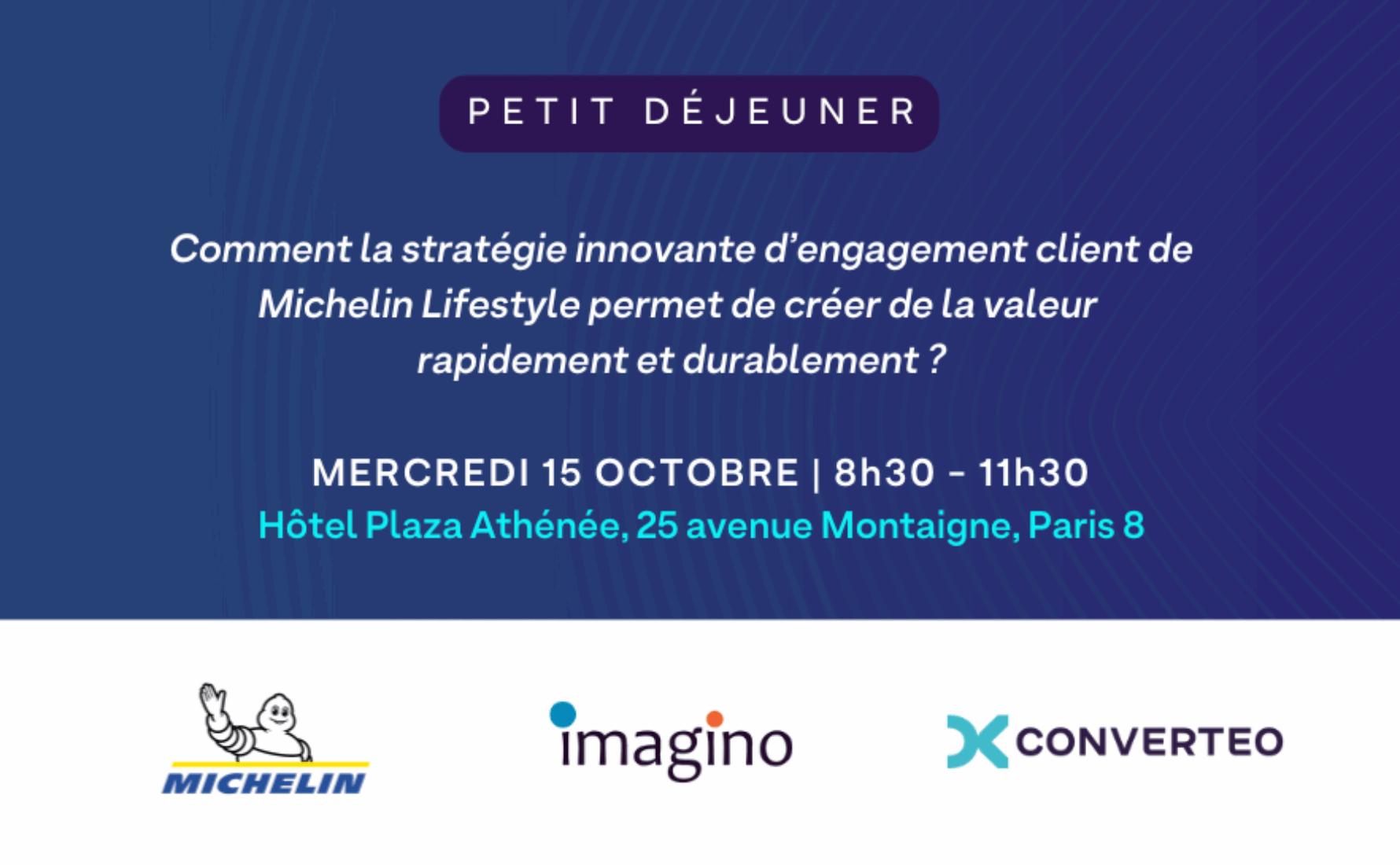 Aux côtés des équipes imagino et Converteo, Michelin Lifestyle partagera son retour d’expérience sur l’engagement client intelligent, la data et l’IA, à travers un projet marketing ambitieux.
